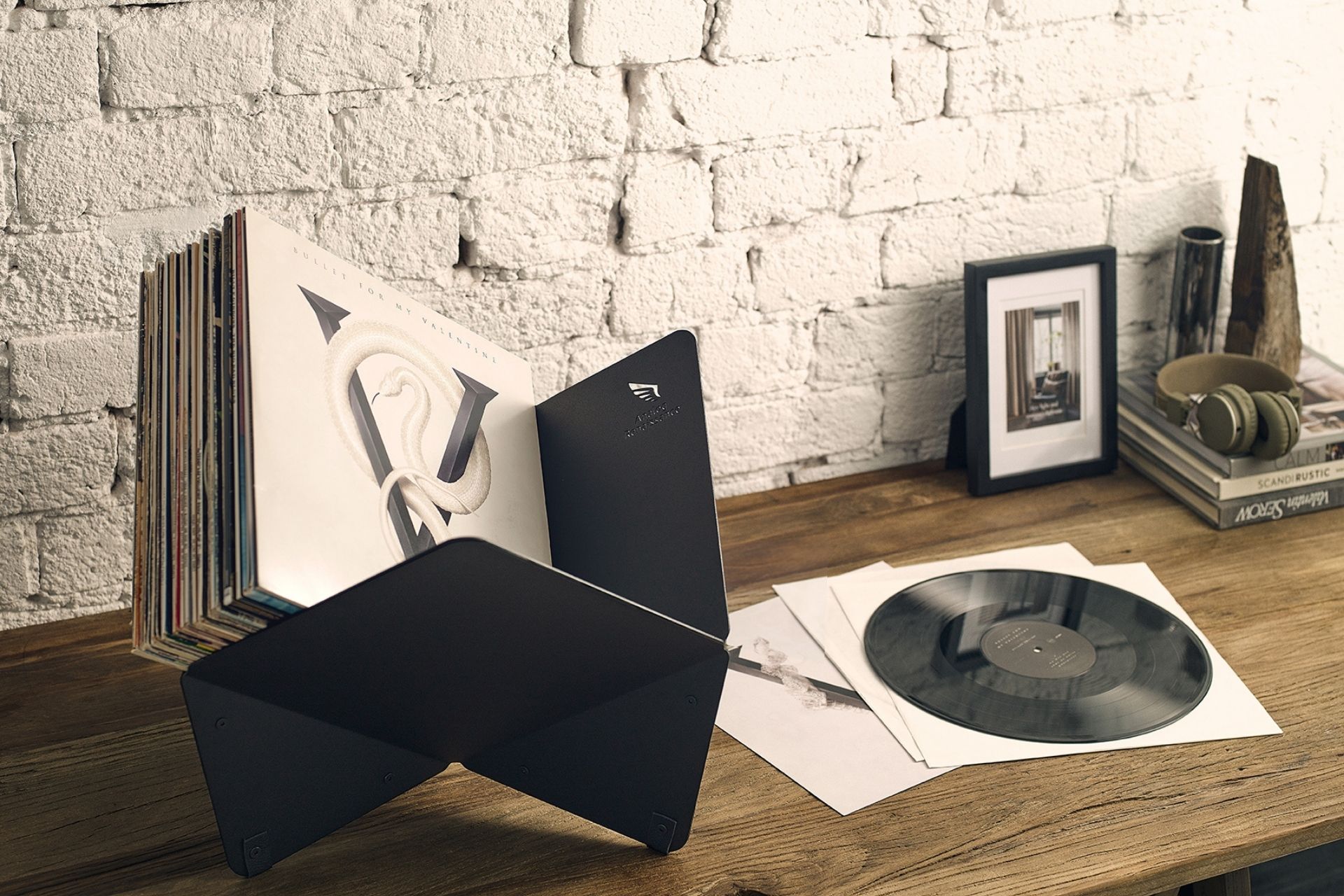 Дизайн подставки для хранения пластинок TARS такой же необычный, как и название. Он был позаимствован у робота из популярного фильма Interstellar. Подставку изготавливают из металла в форме открытого куба.