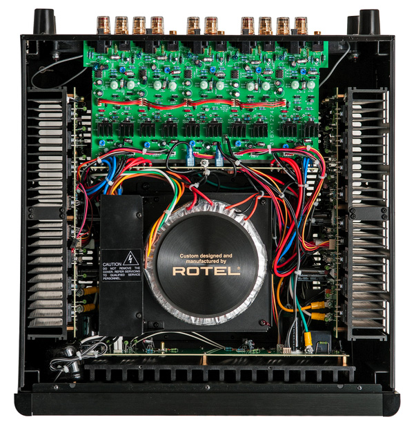 В топовом многоканальном усилителе RMB-1585 MK II разработчиками компании Rotel заложен недюжинный потенциал. Модель выдает 200 Вт на каждый из пяти каналов при нагрузке в 8 Ом, что в сумме составляет 1 кВт реальной мощности.