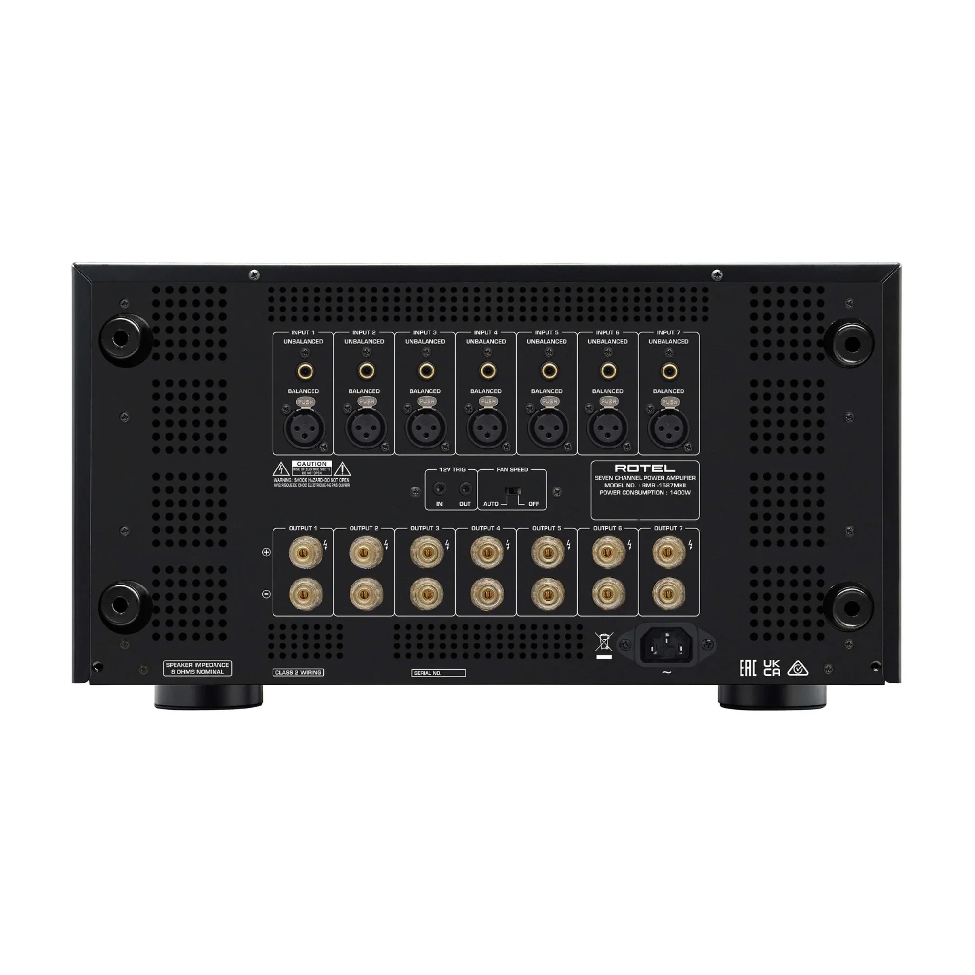 RMB-1587MKII обеспечивает бесподобное качество работы, выдавая в 7 каналов усиления в классе AB номинальную мощность по 155 Вт на 8 Ом и 250 Вт на 4 Ом, при одновременной работе всех каналов. Усилитель так же способен работать в стерео режиме с максимальной мощностью в 335 Вт на 4 Ом.