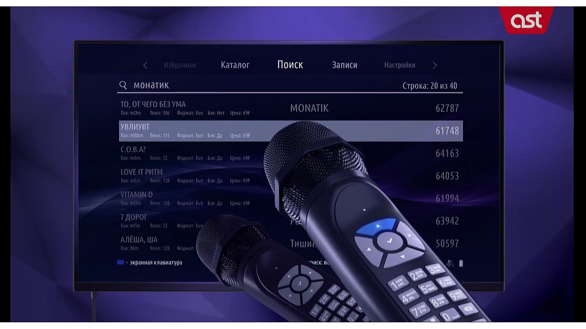 - Песенная база полностью соответствует базе модели AST Home: на сегодня это 1 700 бесплатных песен и общая база в 18 000 песен.