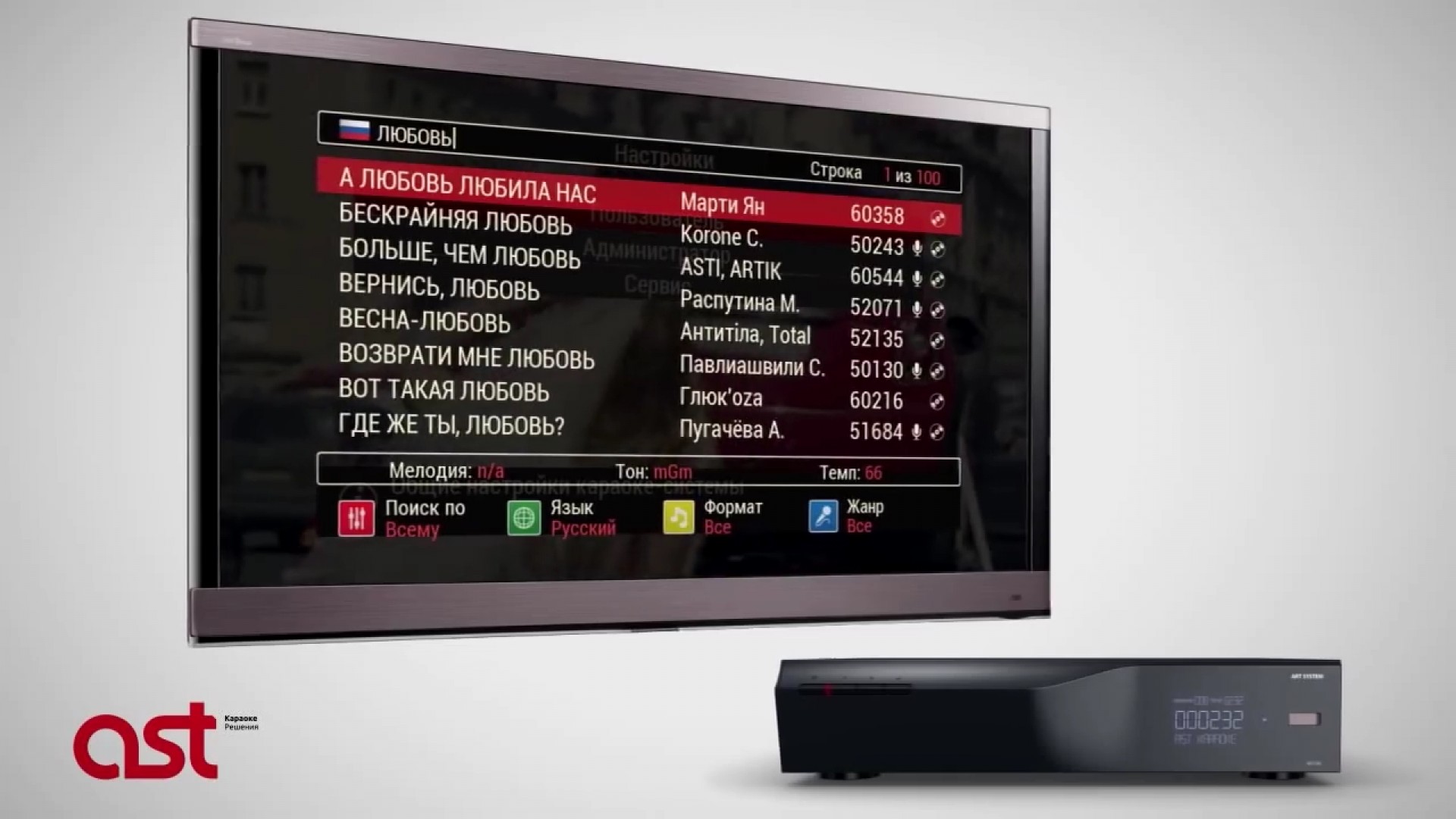 AST-50 - устройство «всё в одном», идеальное решение для небольшого кафе, VIP-комнаты или дома. Встроенная обработка голоса позволит обойтись без дополнительного оборудования, стильный дизайн легко впишется в любой интерьер, объёмный каталог песен заменится удобным планшетом.