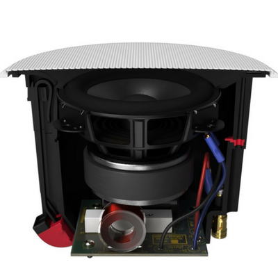 Диаметр динамика в B&W CCM 632 составляет 75 мм и он оснащен бумажным диффузором, обладающим превосходными акустическими свойствами. Излучатель смонтирован на не резонирующем пластиковом шасси, а передняя панель колонки играет роль звуковода, выравнивающего диаграмму направленности в различных условиях. Еще одной особенностью конструкции B&W CCM 632, существенно расширяющей возможности ее применения, является наличие собственного корпуса. Он образует фиксированную нагрузку для динамик и делает звучание АС не зависящим от параметров внутренней потолочной полости, в которую она установлена. Полная монтажная глубина B&W CCM 632 составляет 100 мм.