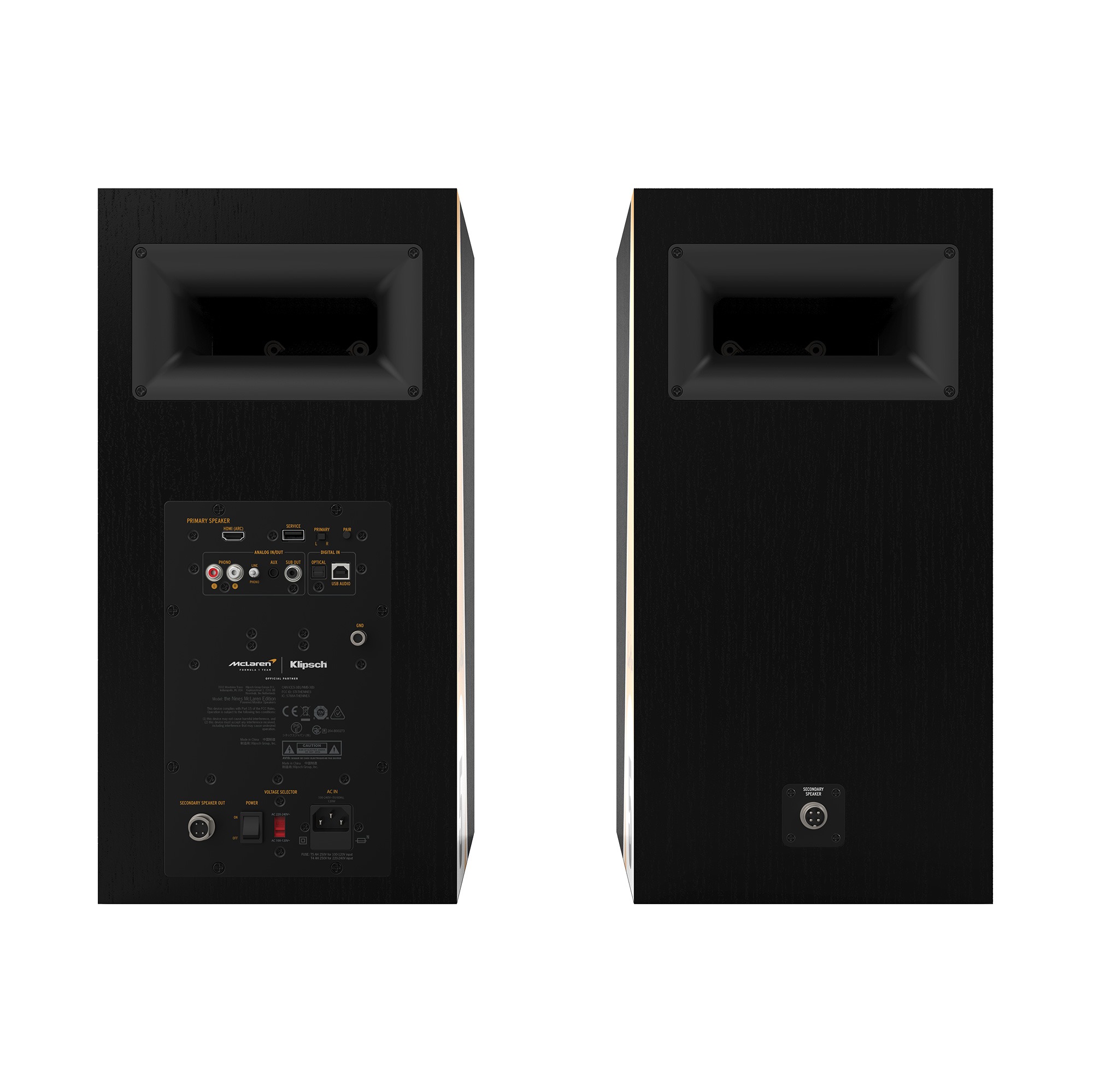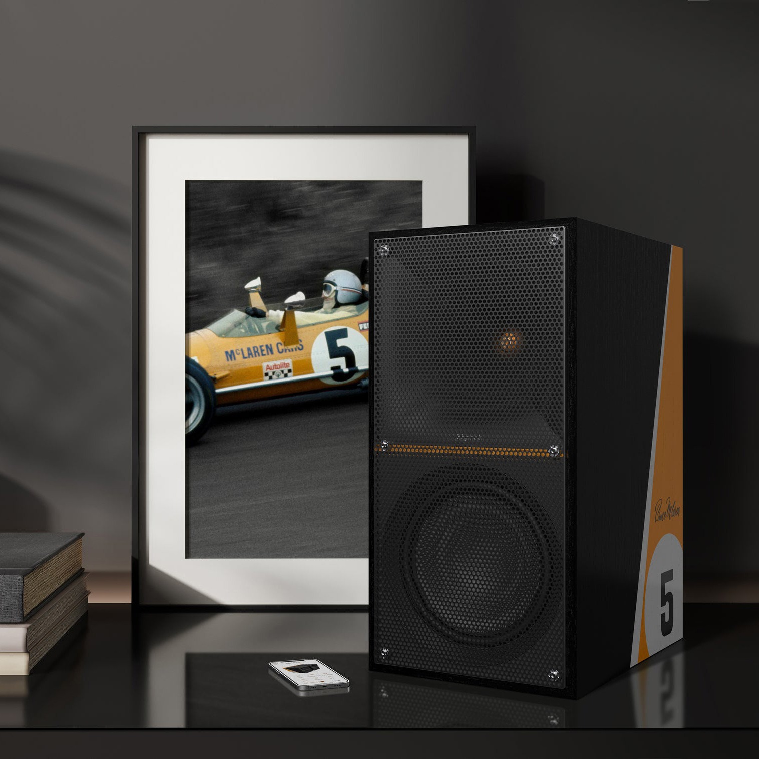 Klipsch The Nines McLaren — активные полочные колонки специальной серии McLaren Legends Series с беспроводным воспроизведением по Bluetooth, встроенным фонокорректором, входом HDMI Arc. Колонки просты в настройке, их легко подключить к различным устройствами. Мощность встроенного усилителя 240 Вт.