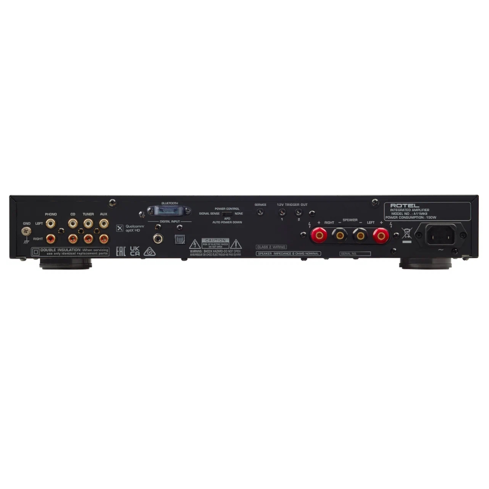 Интуитивно понятные органы управления на передней панели и входящий в комплект ИК-пульт дистанционного управления обеспечивают простую настройку и эксплуатацию. Моторизованный регулятор громкости работает в аналоговой области и обеспечивает повышенную точность. На передней панели имеются также регулировки басов, высоких частот и баланса, что обеспечивает персональную настройку характера звучания A11MKII. Индивидуальное прослушивание доступно с помощью наушников и разъема 3,5 мм на передней панели. Для акустических систем имеются винтовые клеммы на задней панели. Активируемый пользователем сенсор наличия аудио сигнала автоматически включает усилитель при его появлении. Два 12-В триггерных выхода позволяют дистанционно управлять включением остальных компонентов вашей аудио системы.