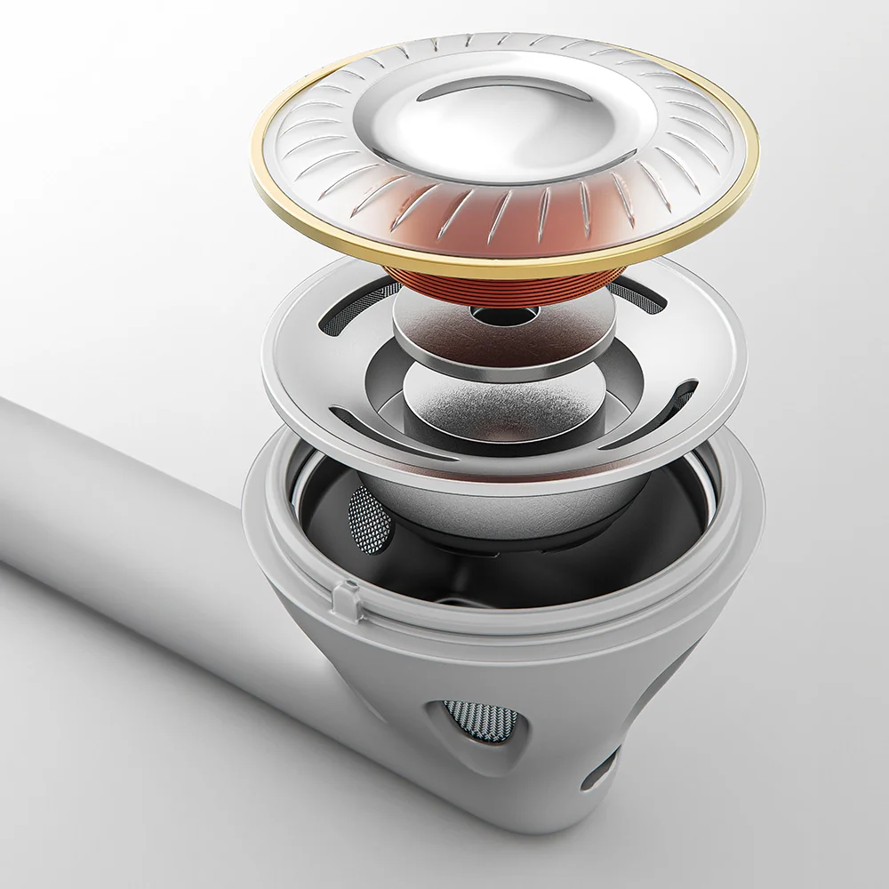 Более глубокий и мощный бас с акустическим сопротивлением труб. Улучшение текстуры басов при сохранении баланса качества звучания.